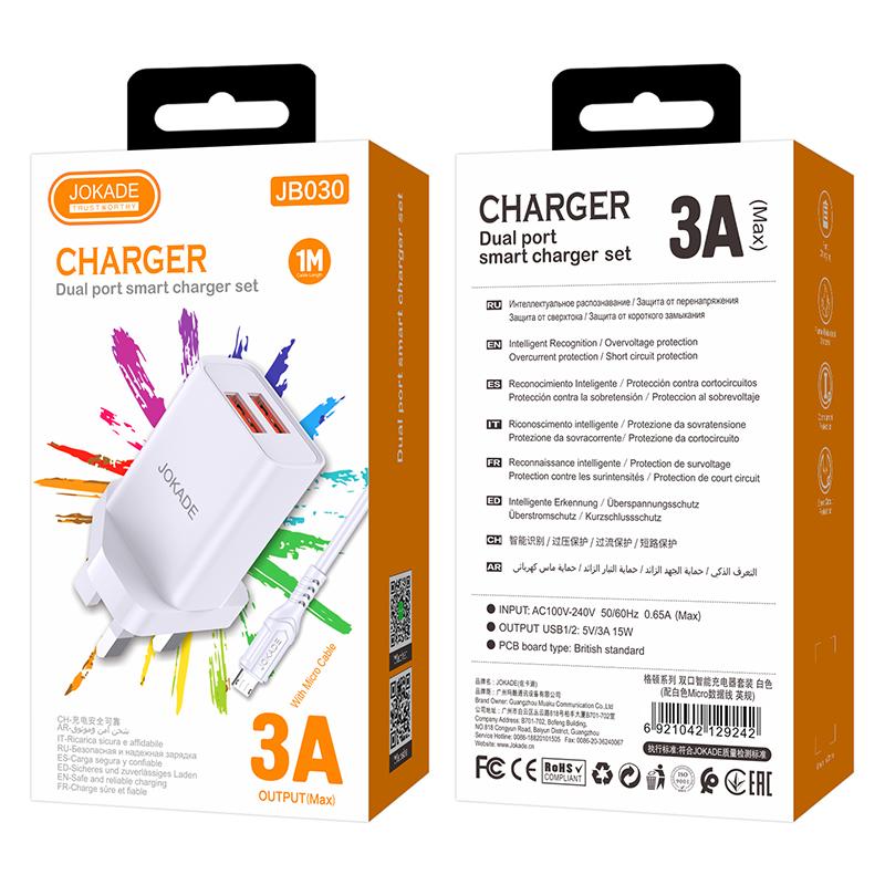 JB030 سلسلة Gedun مجموعة شاحن ذكي بمنفذين (المعيار البريطاني) مايكرو