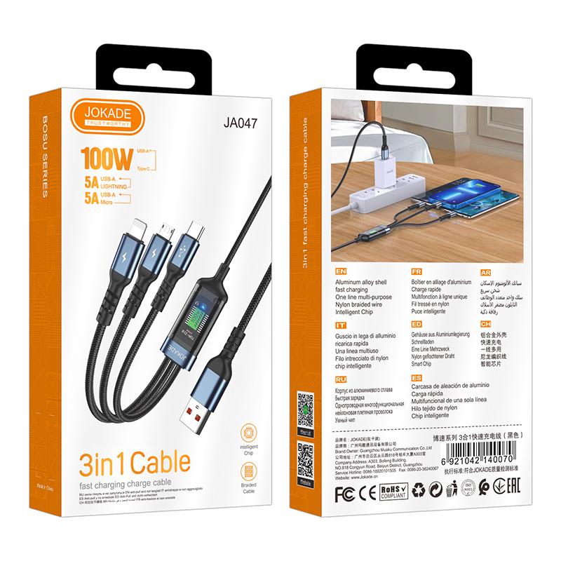 JA047 سلسلة BOSU كابل شحن سريع 3 في 1 PD100W (1.2 متر)