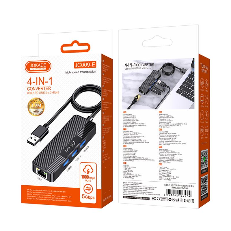 محول الشبكة JC009-E من سلسلة TUOHAI 4 في 1 (USB إلى USB3.0×3 + RJ45) (الطول = 1.2 متر)