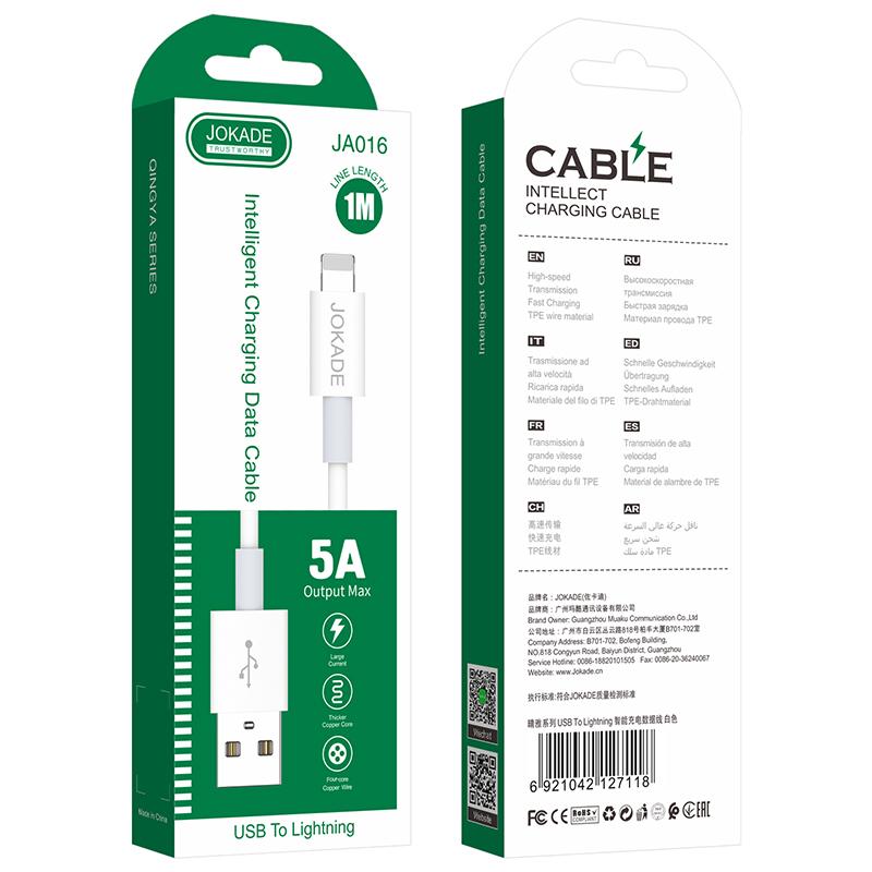 كابل بيانات وشحن ذكي سلسلة QINGYA (طول 1 متر) (ايفون)