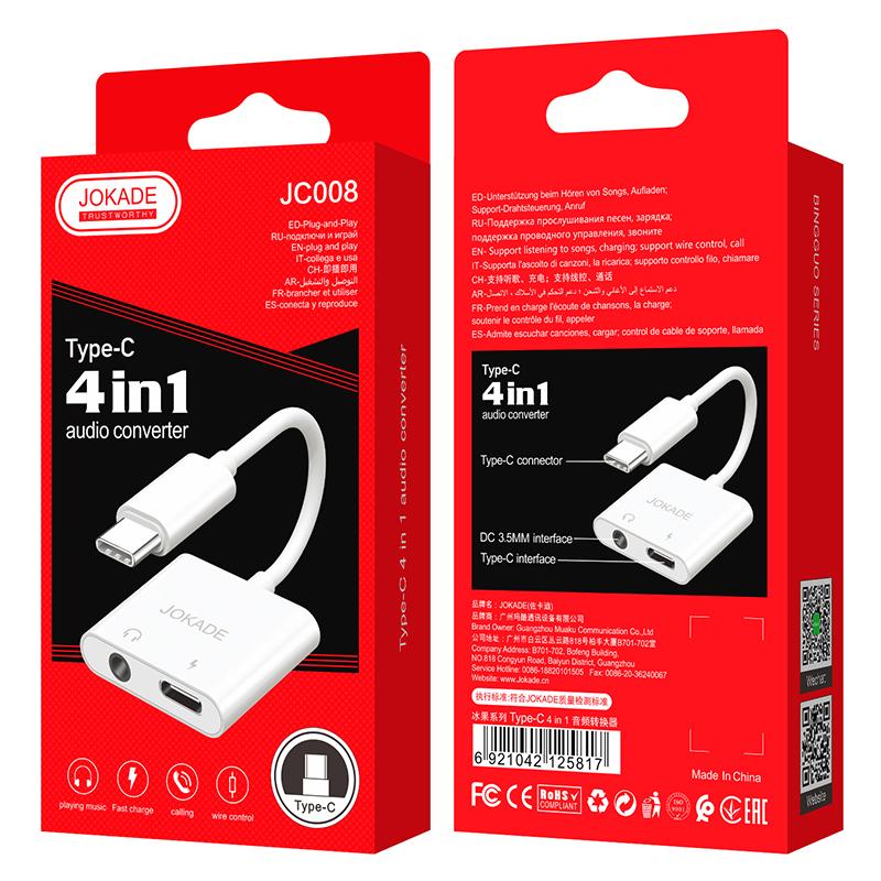 محول JC008 من سلسلة BINGGUO 4 في 1 للصوت (Type-C)