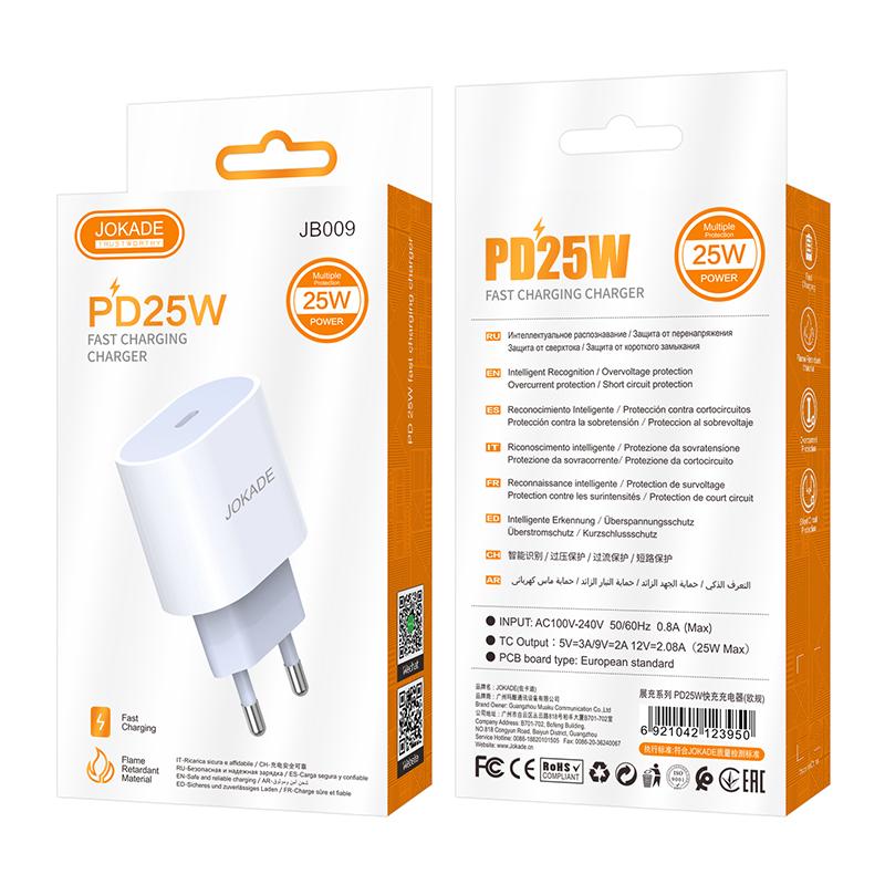 JB009 سلسلة ZHANCHONG شاحن ذكي PD25W بمنفذ واحد (قابس EU)