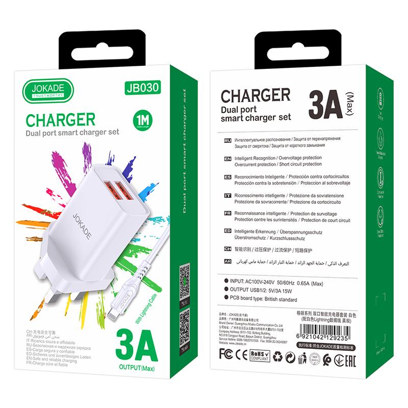 JB030 سلسلة Gedun مجموعة شاحن ذكي بمنفذين (المعيار البريطاني) ايفون