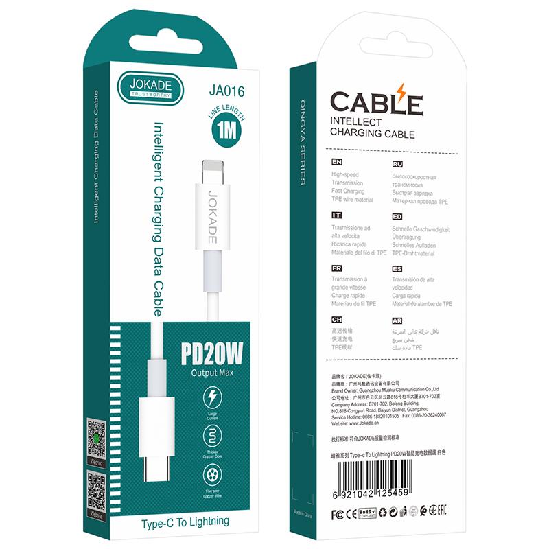 كابل بيانات وشحن سريع بقوة 20 واط سلسلة QINGYA (طول 1 متر) (تايب سي الى ايفون).