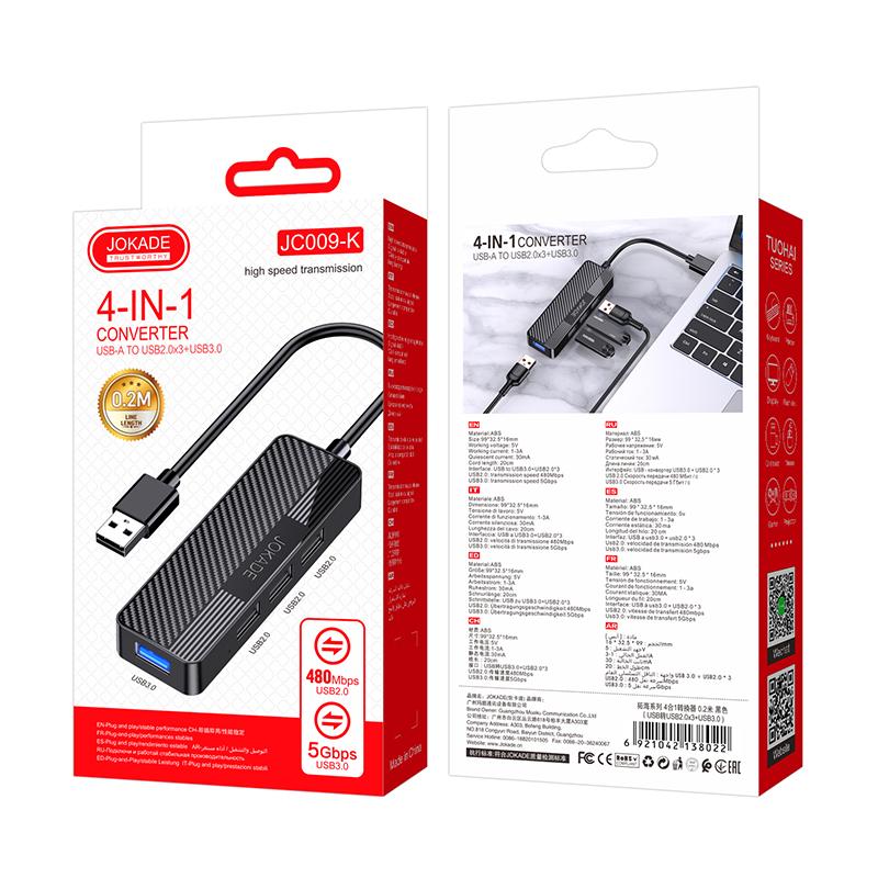 محول JC009-I من سلسلة TUOHAI 4 في 1 (USB3.0×4) (الطول = 0.2 متر).