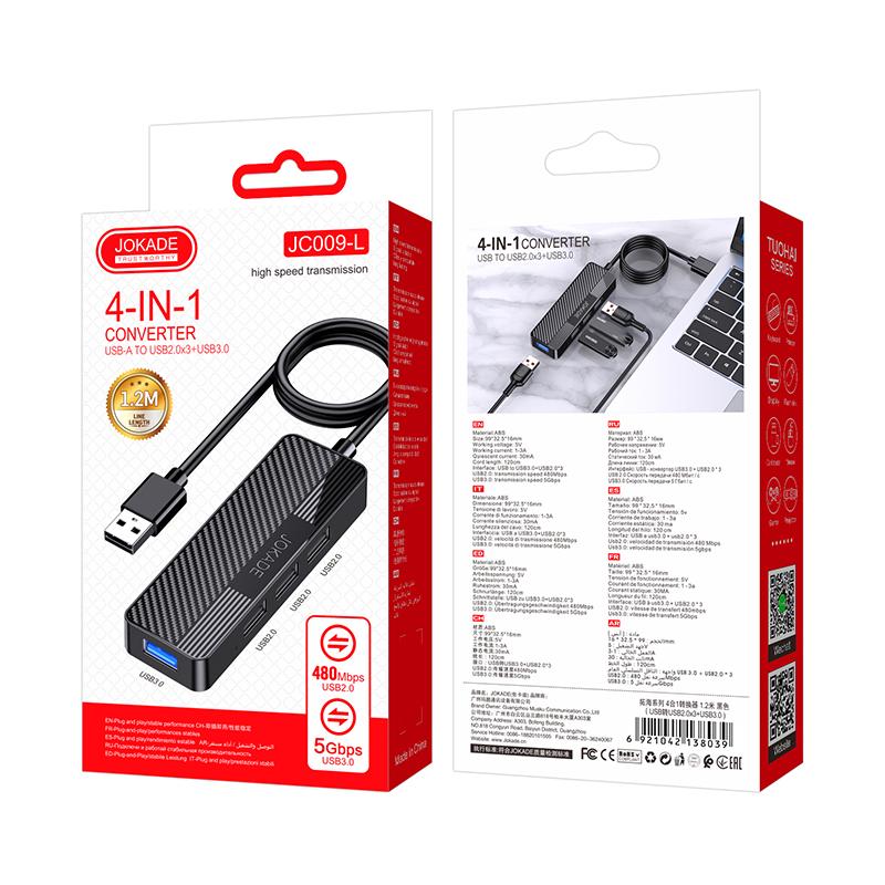محول JC009-L من سلسلة TUOHAI 4 في 1 (USB3.0 + USB2.0×3) (الطول = 1.2 متر).