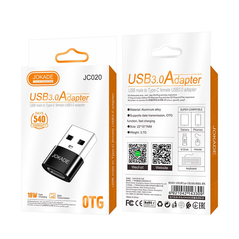 محول JC020 من سلسلة ZHIQUAN (USB ذكر إلى Type-C أنثى USB3.0).