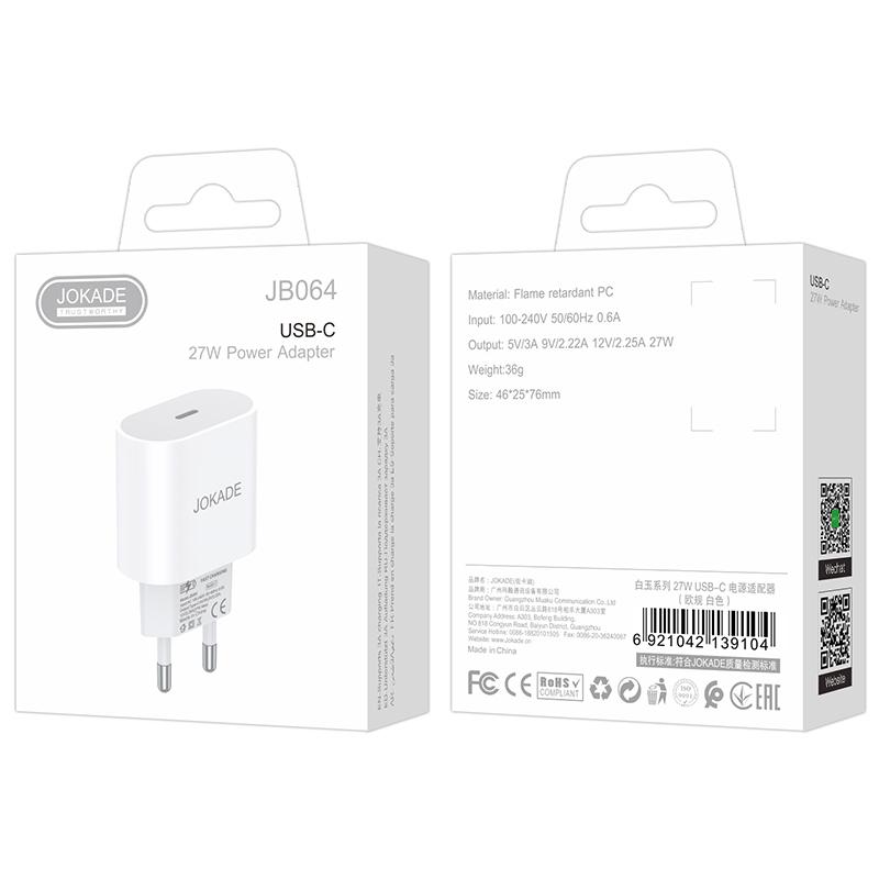 JB064 سلسلة BAIYU شاحن PD27W بمنفذ واحد (قابس EU)